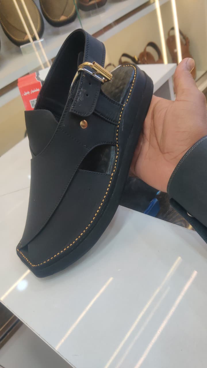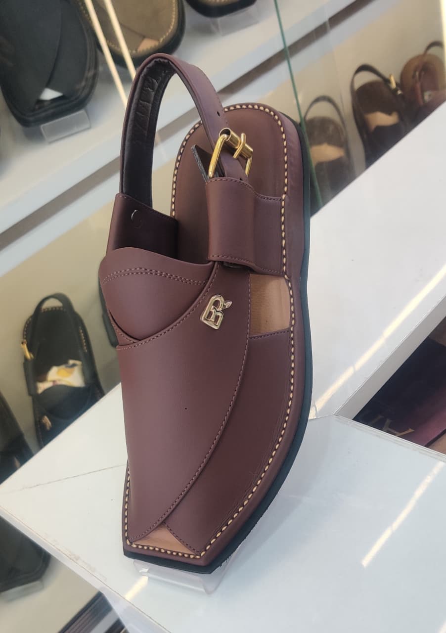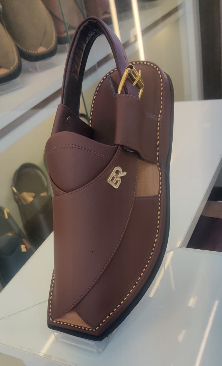 Classic Peshawari chappal made from high-quality leather. Comfortable footbed, strong stitching, and a secure buckle strap for daily use.