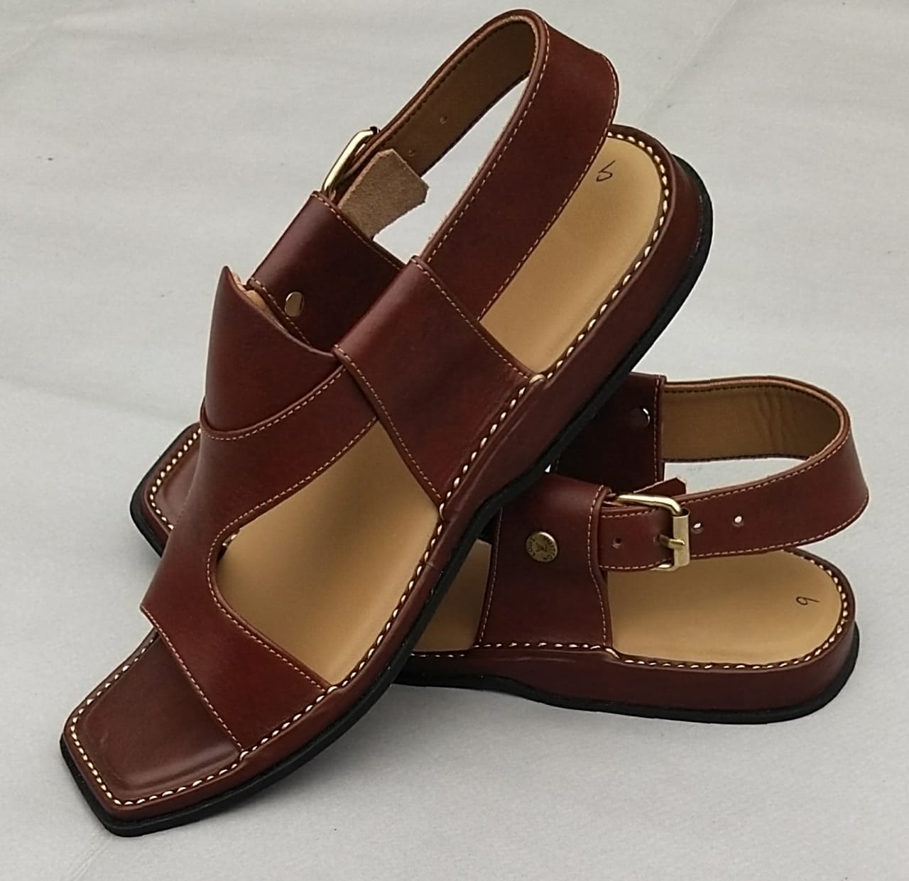 Classic Peshawari chappal made from high-quality leather. Comfortable footbed, strong stitching, and a secure buckle strap for daily use.